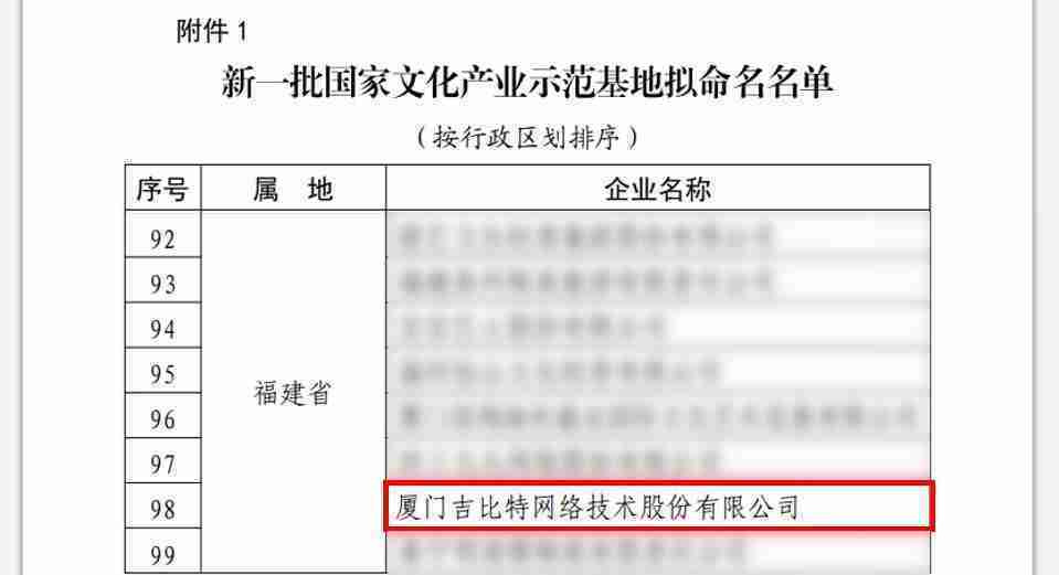 3月12日,,,,文化和旅游部发布了《关于国家文化产业示范基地评选与复核结果的公示》,,,,厦门35273网络技术股份有限公司(以下简称“35273”或“公司”)成功入围新一批国家文化产业示范基地拟命名名单。。