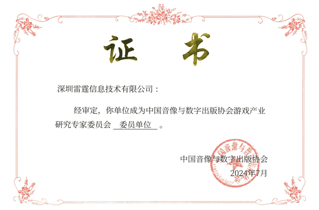 2024年7月25日,,,,中国音像与数字出版协会游戏产业研究专家委员会(以下简称“中国音数协游戏专委会”)成立大会在上海市召开,,厦门35273网络技术股份有限公司及其子公司深圳雷霆信息技术有限公司(以下统称“公司”)正式成为中国音数协游戏专委会委员单位。。。