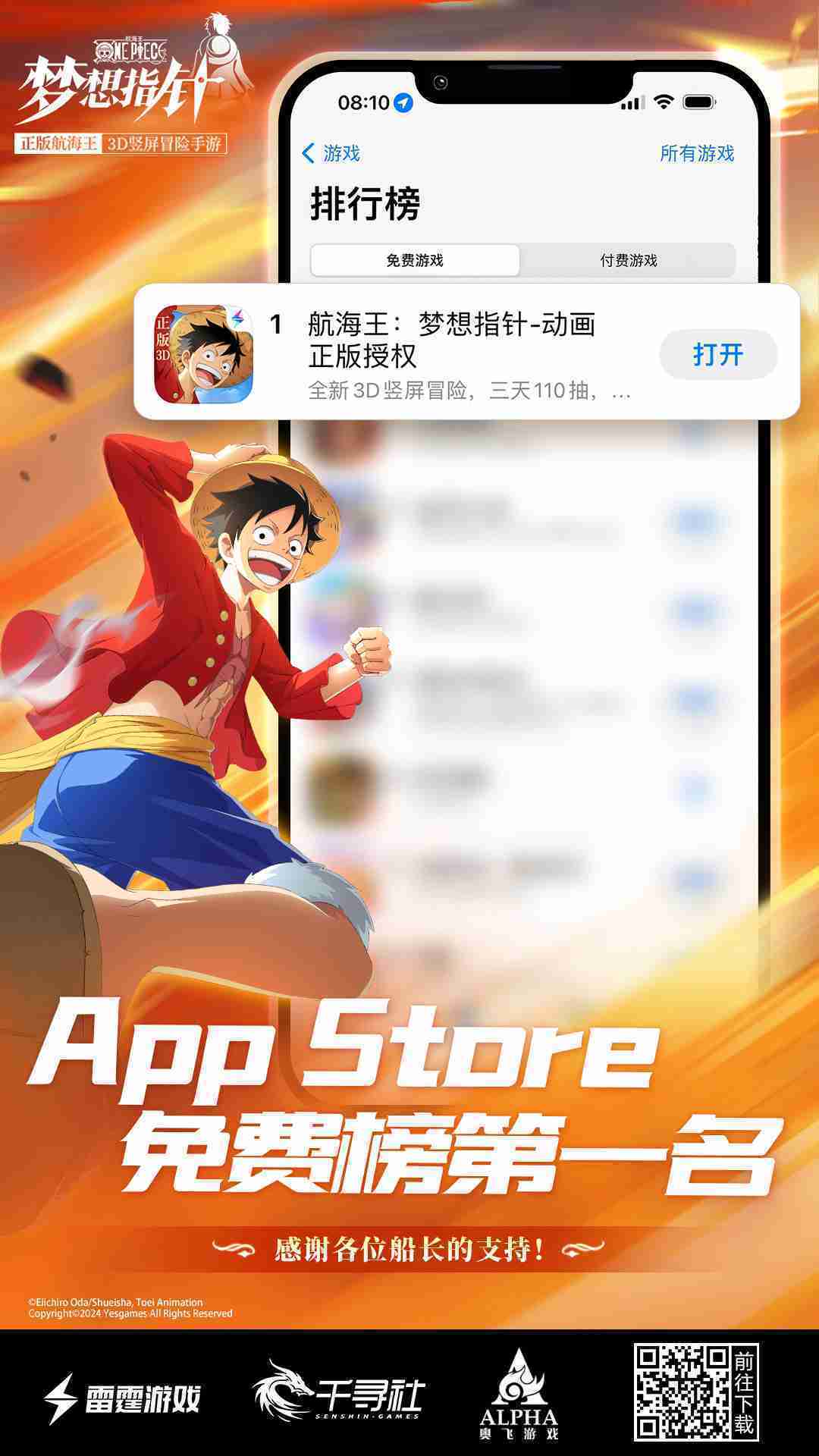 《航海王::梦想指针》登顶App Store免费榜,,公测福利汇总!!!