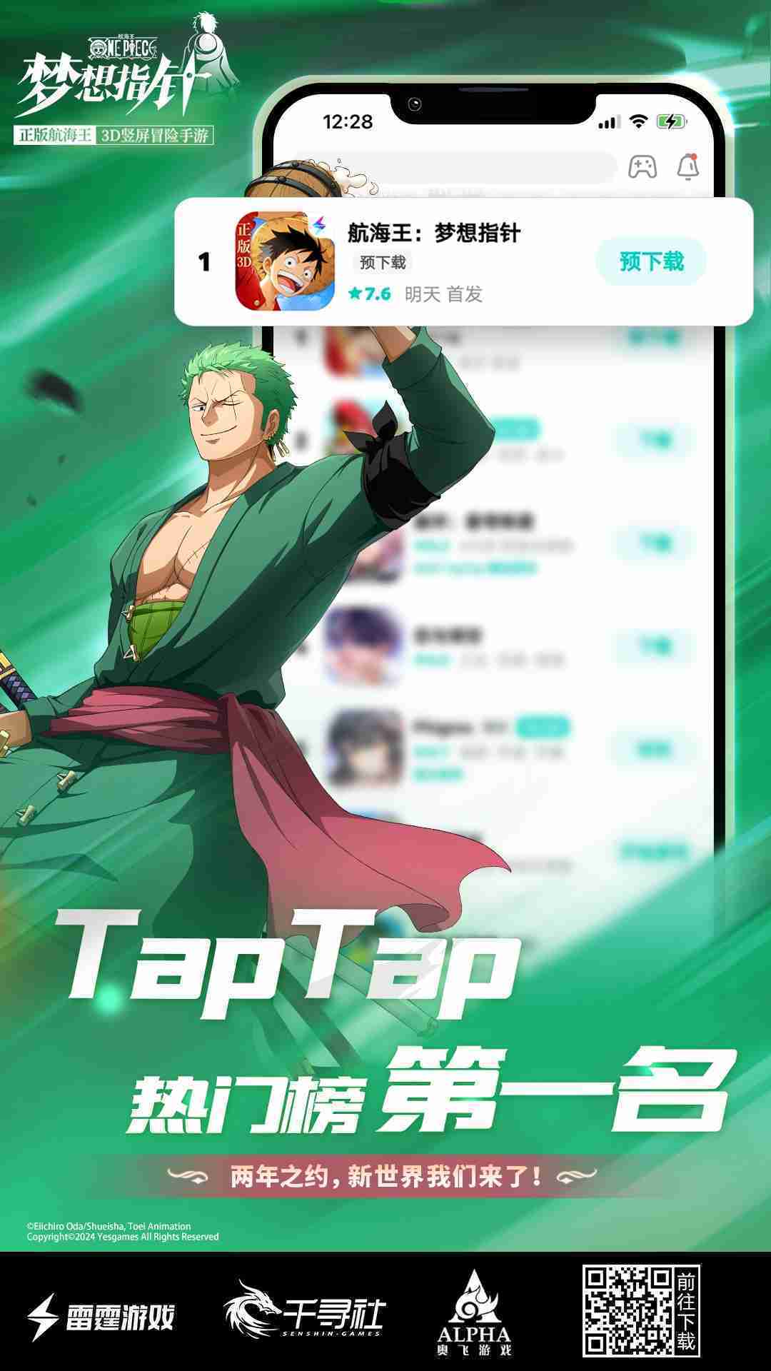 4月1日,,,,手游《航海王::::梦想指针》正式公测,,,上线仅2小时不到就登上了App Store免费榜Top1,,,与TapTap热门榜第一。。。