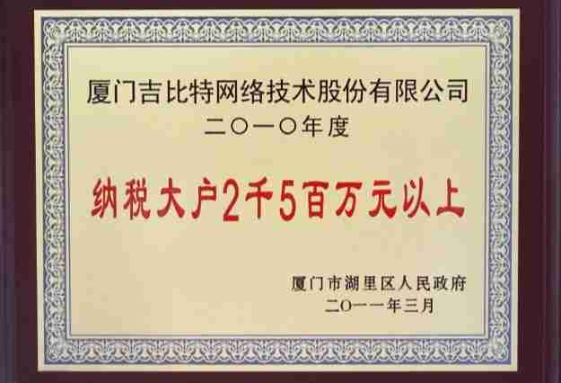 日前,,,,公司被厦门市湖里区人民政府授予了“2010年纳税大户”的荣誉称号,,,充分体现了公司一贯合法纳税、、、诚信经营的良好企业社会公民行为。。